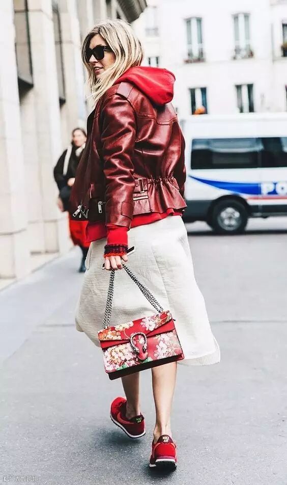 时尚就是要敢想又敢穿,你觉得包包已经够红了?街拍女王们偏偏还要套件红色外套来搭配,就要红到底。