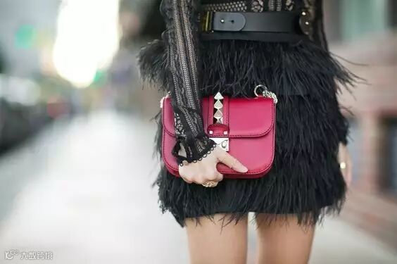 Valentino的铆钉鞋款和爆款都是必备的单品。一只简单的铆钉手包可以让日常穿搭多那么一点点酷酷的感觉。