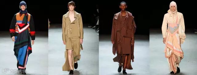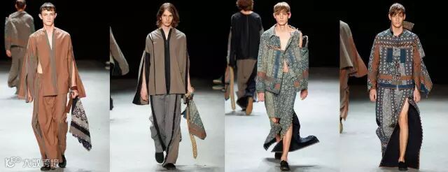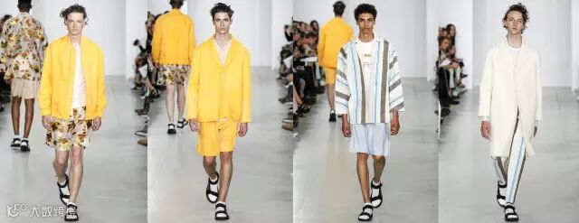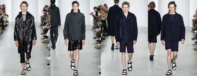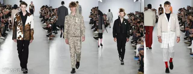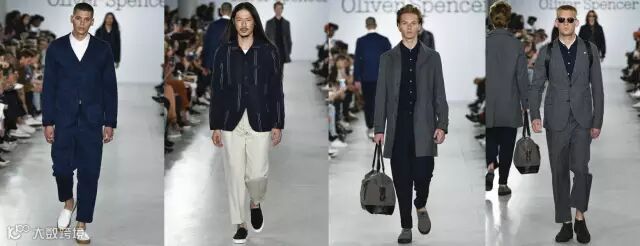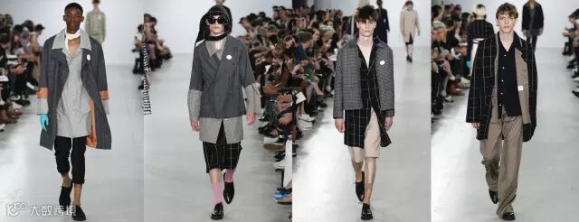 关键词:Agi&Sam是新锐时装品牌,由英国先锋设计师Agapa Mdumulla和Sam Cotton二人创立(此二人都曾任职于Alexander McQueen)。英伦雅痞本质和规则化的剪裁款型配比,在规则的格纹和不传统建筑感结构中还添加了灰色调的植物花纹,短外套和长款内搭的趣味实验很吸引人。