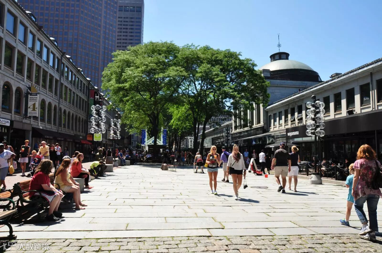 昆西市场(Quincy Market)是波士顿著名的购物场所,市场的中央建筑内有许多的美食摊位,相邻的2栋是时装、装饰品、珠宝与礼品店。