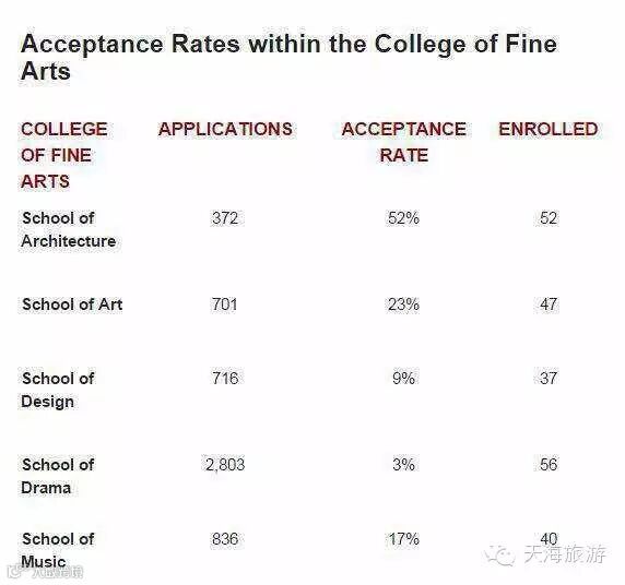 其它学院的ACT分数大部分在33,换算成SAT大概在2200左右,这是平均录取的学生的分数。除了艺术学院的录取要求稍微低一点,它的ACT30=SAT 2200。