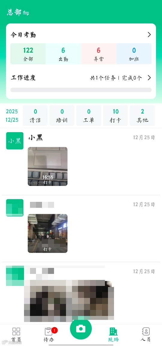 领班也可组织集体拍照打卡,数据实时同步至后台。