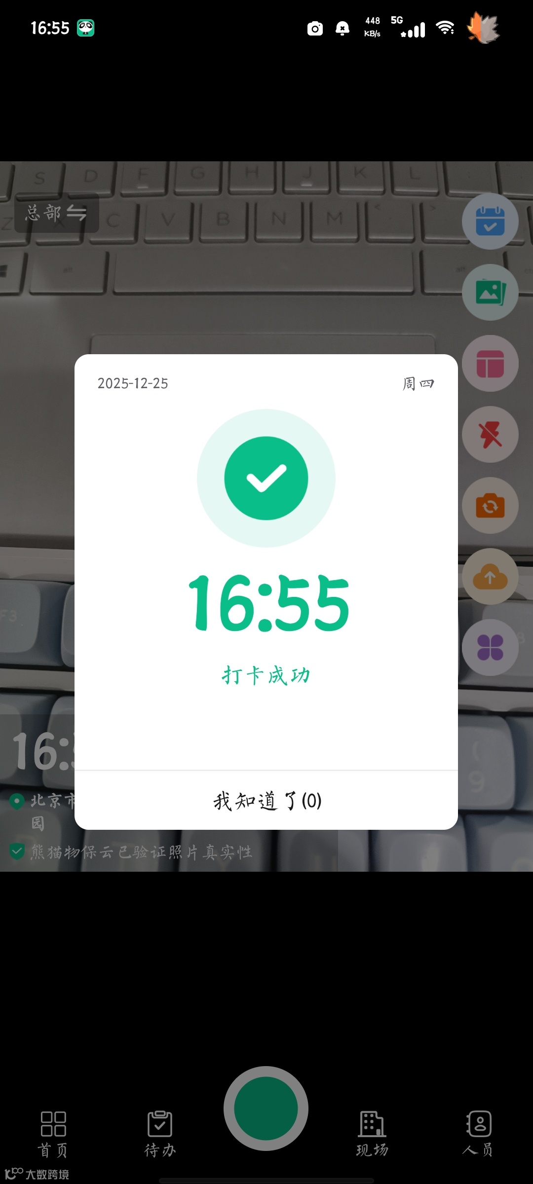 员工可通过一键拍照完成打卡,水印相机自动记录不可篡改的时间与地点。