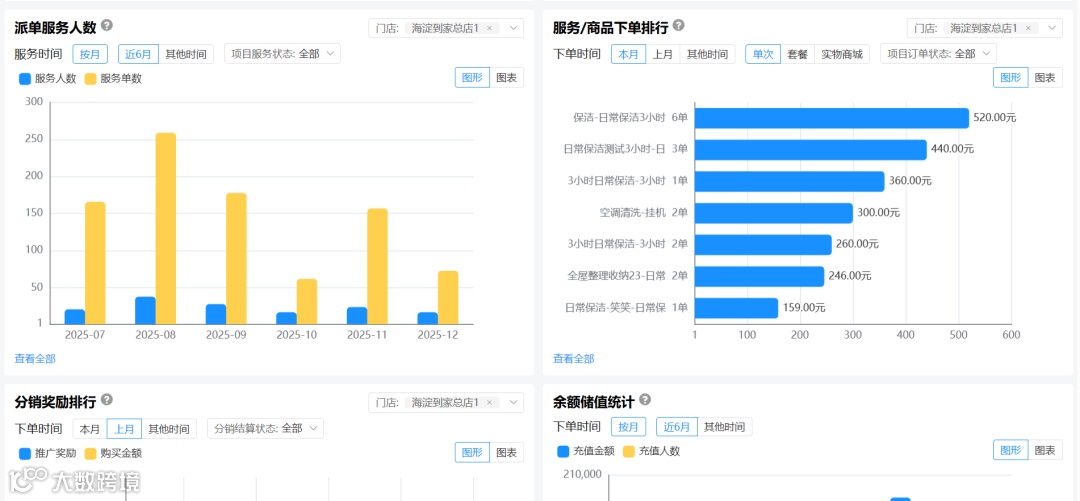 对于预付费业务,“余额储值统计” 则帮助他更好地管理现金流与客户消费预期。