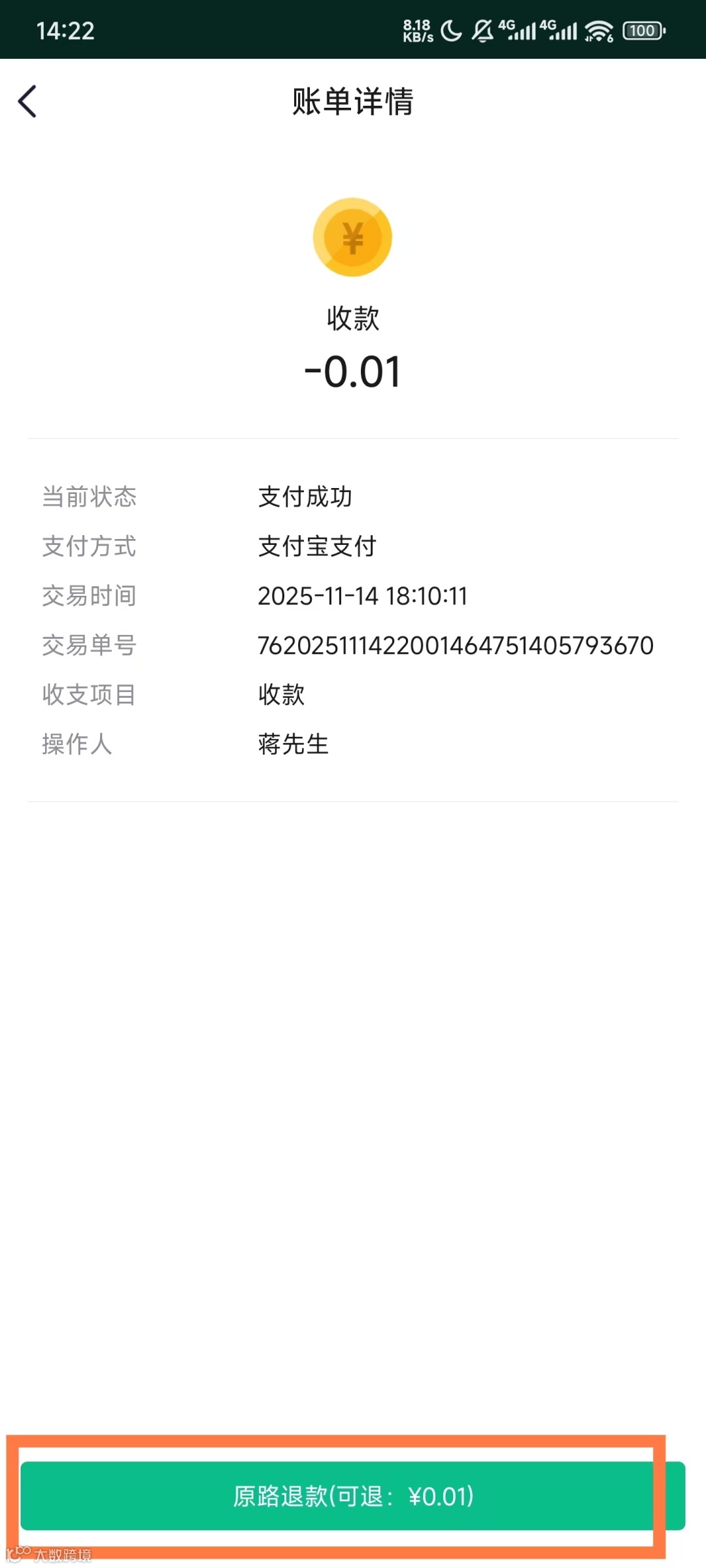 原路退款,体验升级成本降