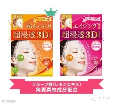 完全适合脸部线条的3D面膜,更好地帮助吸收以及使用时的舒适度。许多网友推荐胶原蛋白&玻尿酸,这两款面膜在药妆店的3D面膜中很有人气。每1张面膜中含30ml的美容液。 使用方法:一周2-3次的频率即可。洗完脸,涂好爽肤水或化妆水后,敷于面部。15分钟以内。如果是极度干燥的肌肤可以延长至20分钟左右,注意不要时间太长哦。