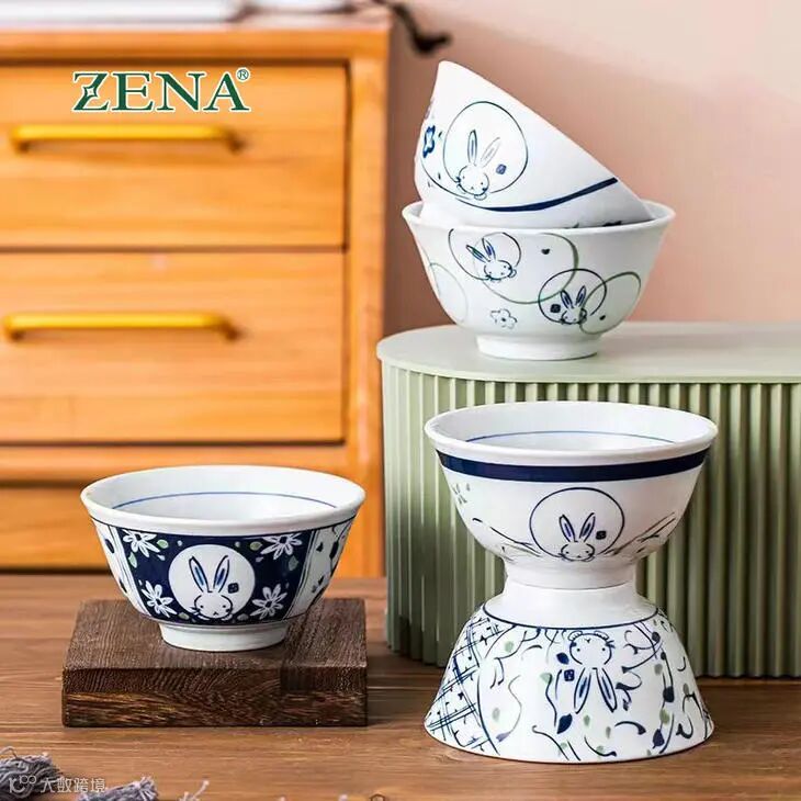 ZENA祥瑞兔红/蓝色5英寸碗套装-5入