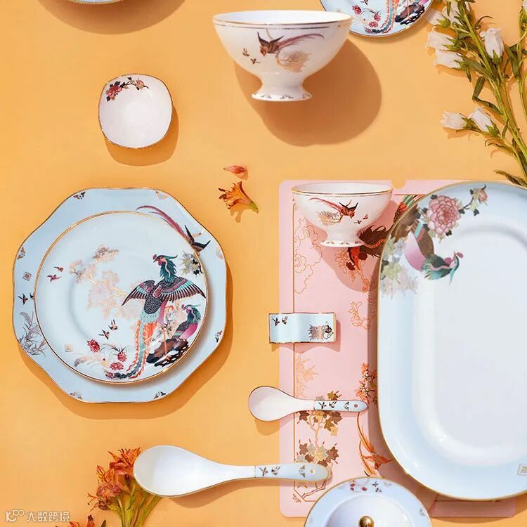 奥唯百鸟朝凤骨质瓷餐具套装-30头