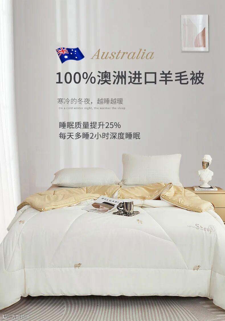 羊毛被保暖透气,孩子安睡不踢被。