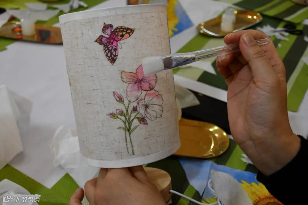 在接下来的活动环节中,娟子老师为大家分享了蝶古巴特的艺术起源,蝶古巴特工艺与现代融合,蝶古巴特艺术台灯的制作技法。
