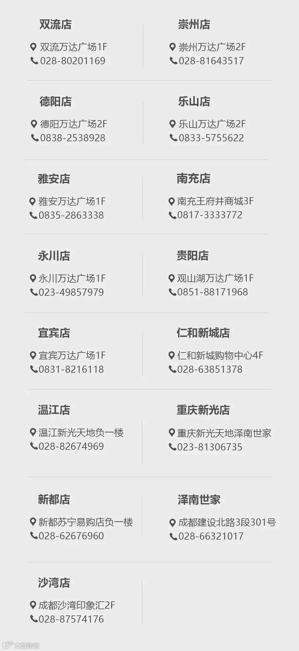 【永川店、南充店 11.27-12.20,乐山店 12.1-12.20】