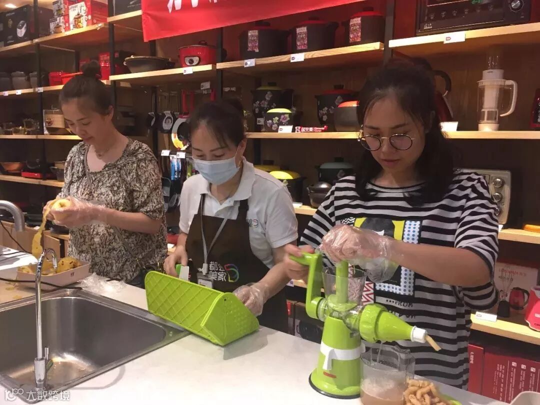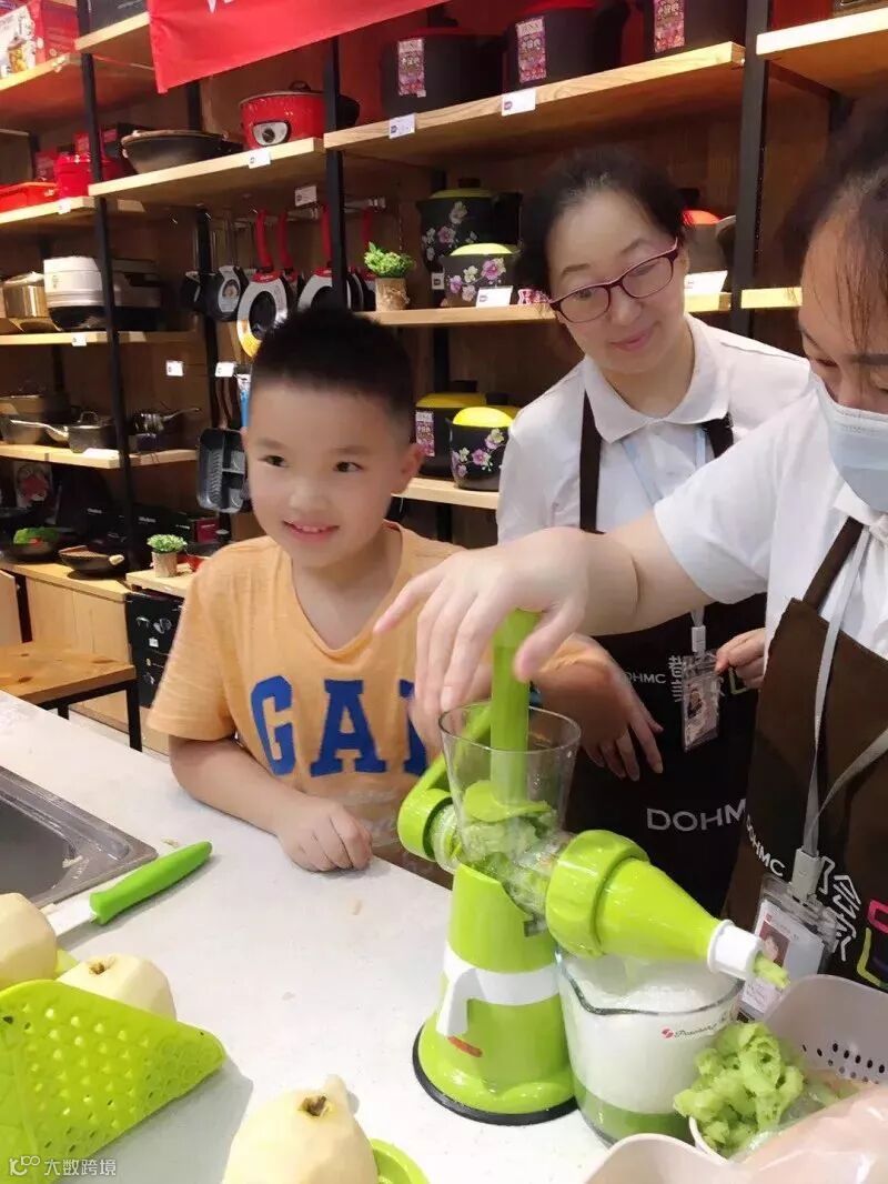 活动现场我们使用的是手动多功能水果榨汁机,环保设计,不插电无刀片,操作更安全,保留水果蔬菜的丰富营养和原汁原味的口感~