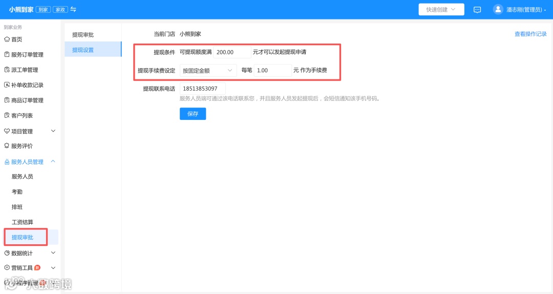 作为管理者,您可以根据公司的运营策略,为每个门店独立设置提现规则。