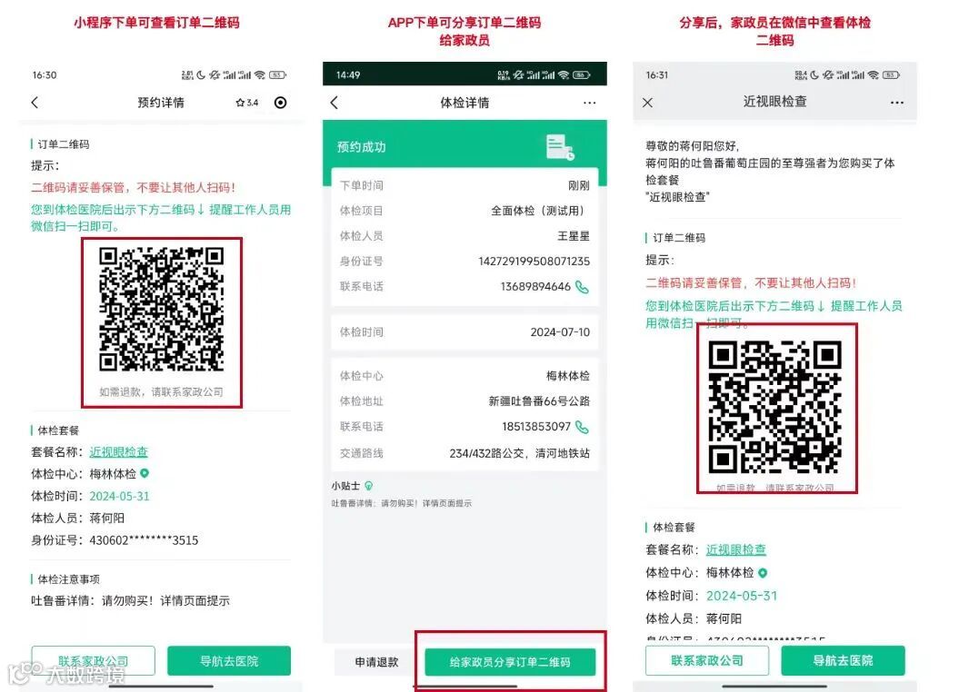 线上下单体检、体检报告自动回传系统、AI解读体检报告,能否上户一目了然,帮助家政老师省去找报告、读报告的麻烦事。