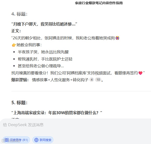 比如“在月嫂身上看到女性力量”、“请保洁阿姨后,我的生活发生了哪些改变”等通过情感共鸣和真实场景降低用户决策阻力,是转化的重要推力