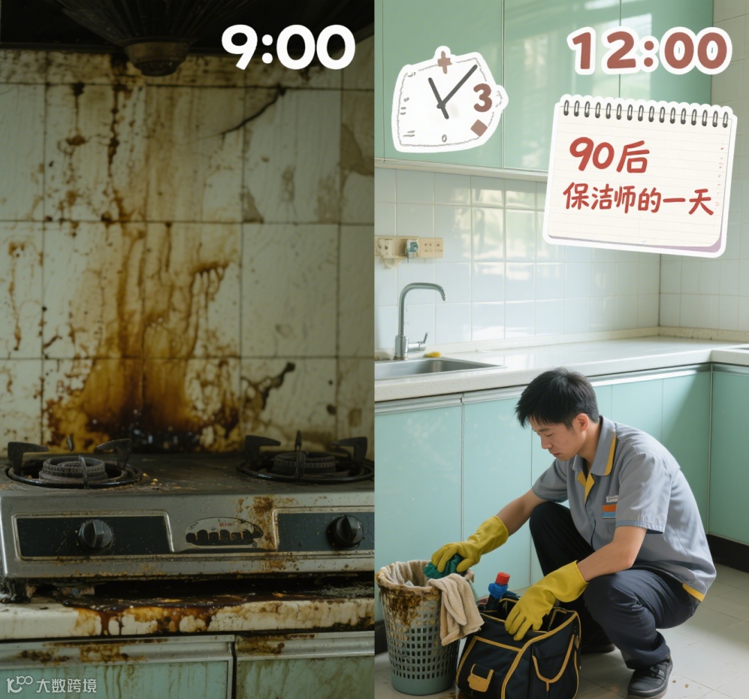 二是工作纪实:发布服务前后对比图(附清洁技巧干货),如“90后保洁师的一天:3小时让老房重生”