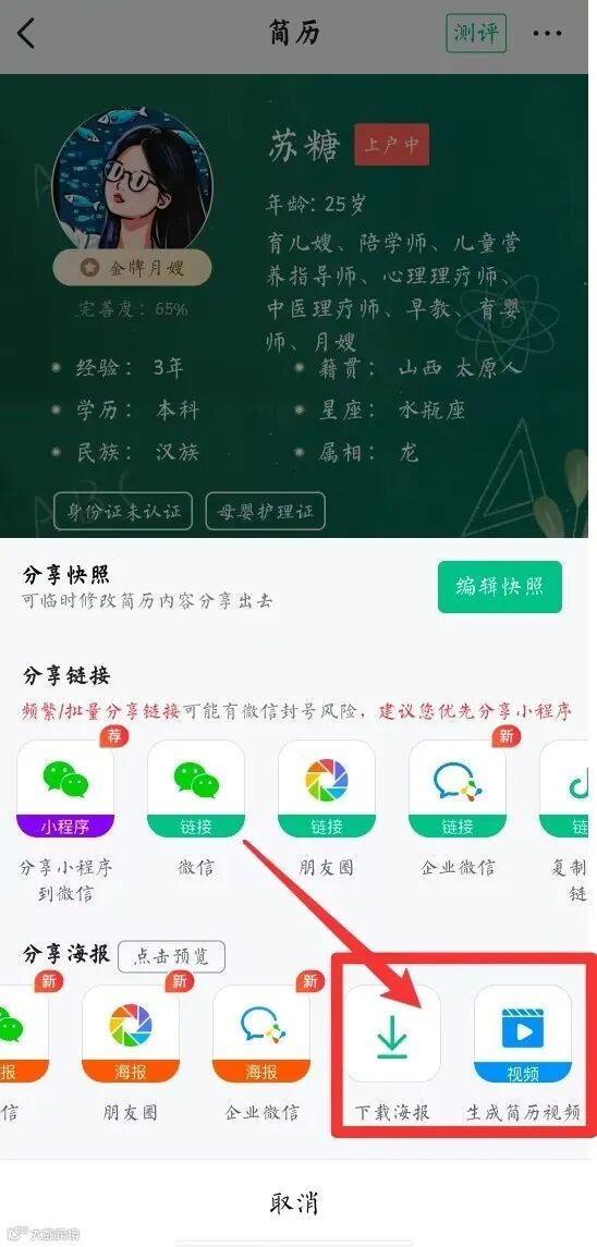阿姨简历怎么发呢?(扫码可查看示例)