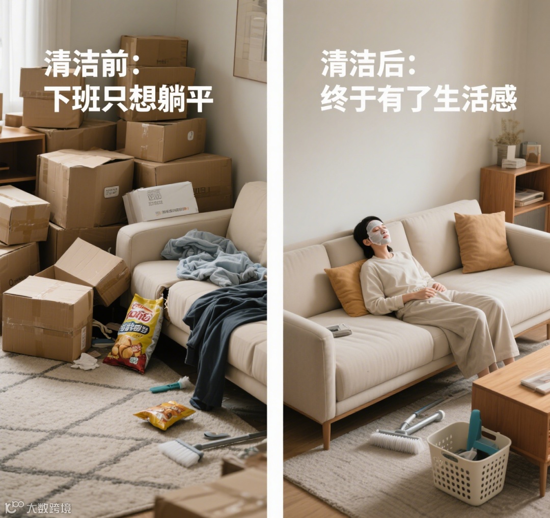 突出服务带来的视觉变化和生活质量提升,如清洁前后对比、整理收纳效果等。