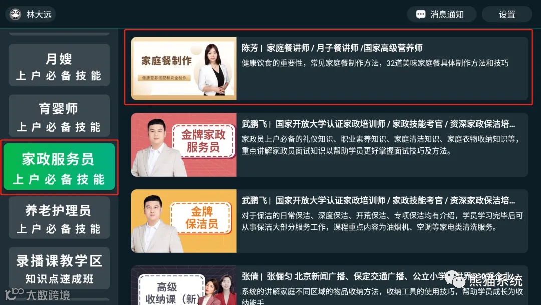 如何解决这个难题呢?熊猫AI课给出了解决方案,依托于平台能力,熊猫系统链接了行业内头部讲师资源,将众多优秀的培训课程搬到了线上。一个学习盒子,连接电视就能随时随地开启培训。