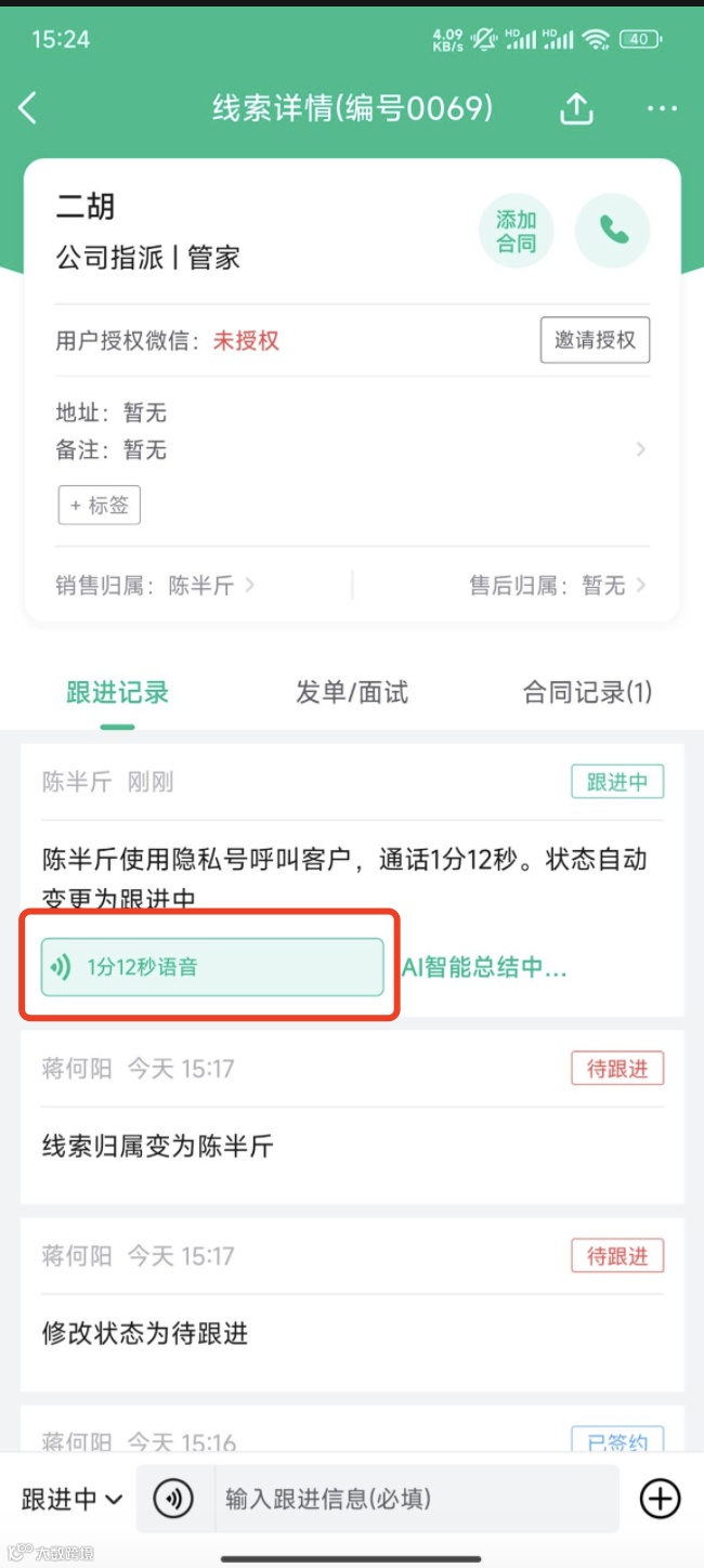 客户线索电联完需要手动记录跟进,员工觉得麻烦、费时费力,因而总是推行一段时间就不了了之,而且人工记录也容易有遗漏的部分。