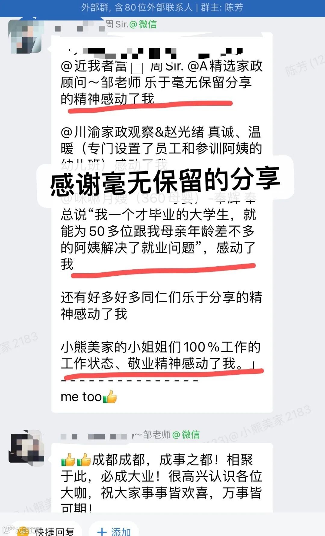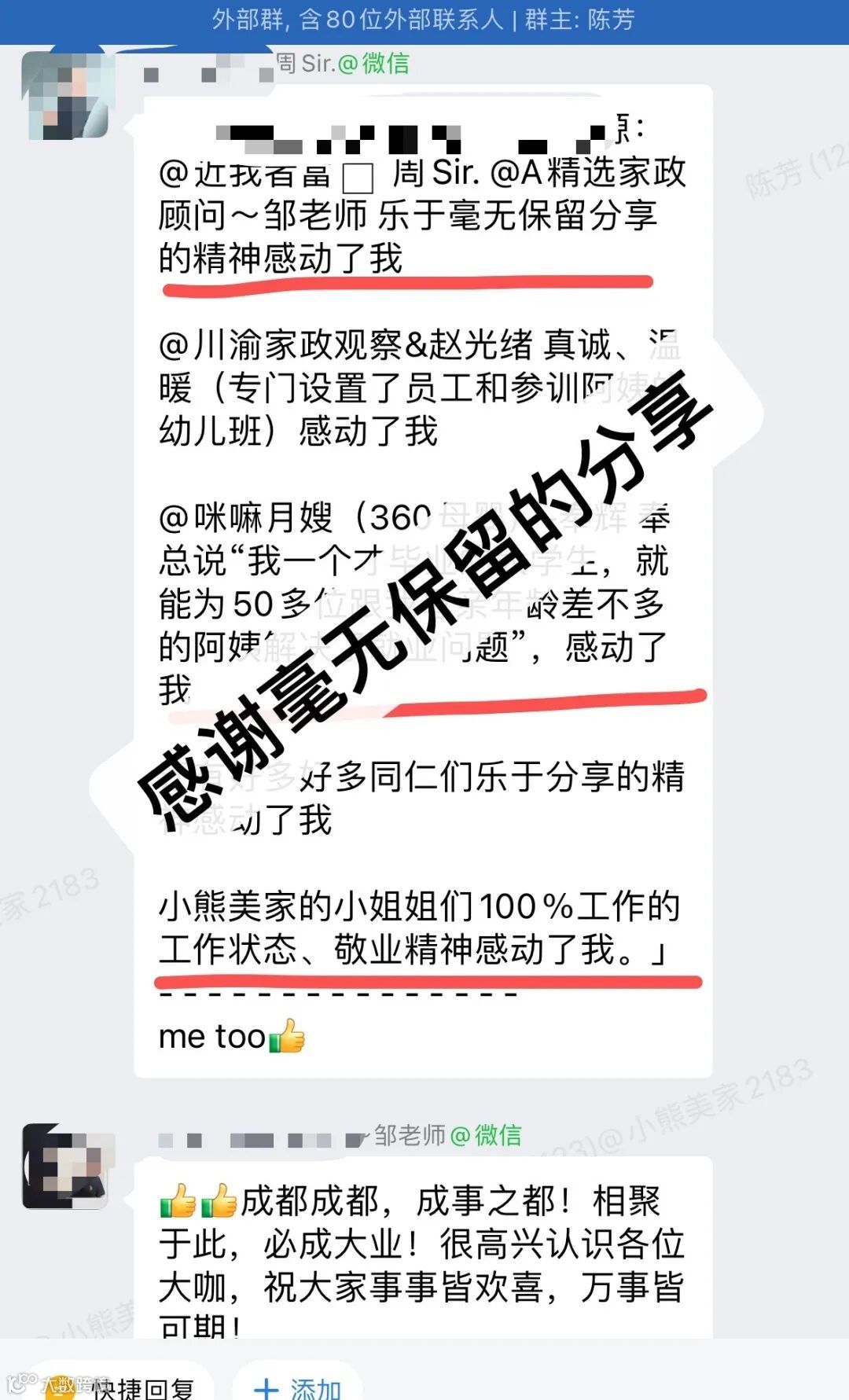 2023年8月11日,在学员们相互分享交流、意犹未尽的浓厚学习氛围中,为期两天的熊猫—家创社新家政突破营·成都站圆满结课!