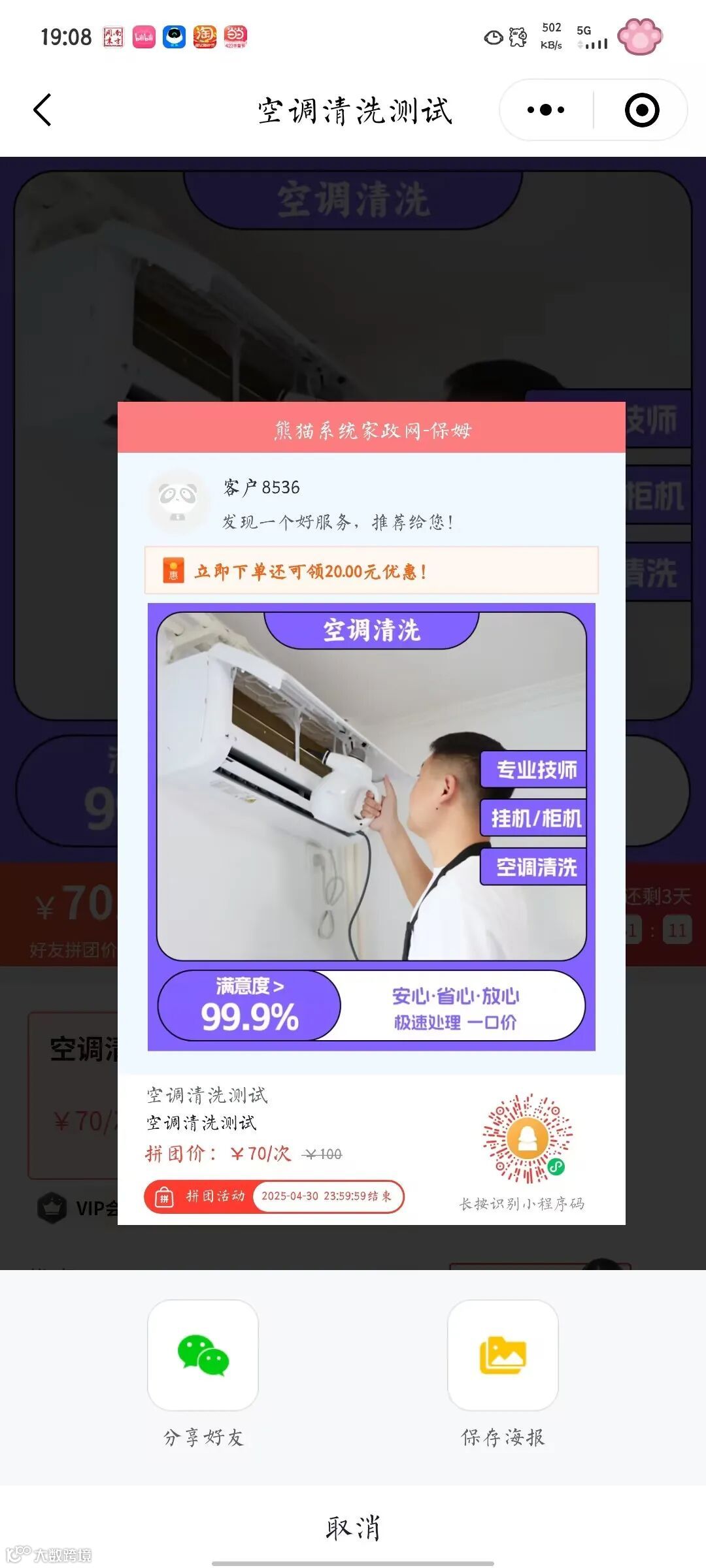 使用熊猫到家云系统的拼团功能,让客户自己转发小程序拉人拼单,减少人工统计的麻烦,也能在无形中增加客户复购。