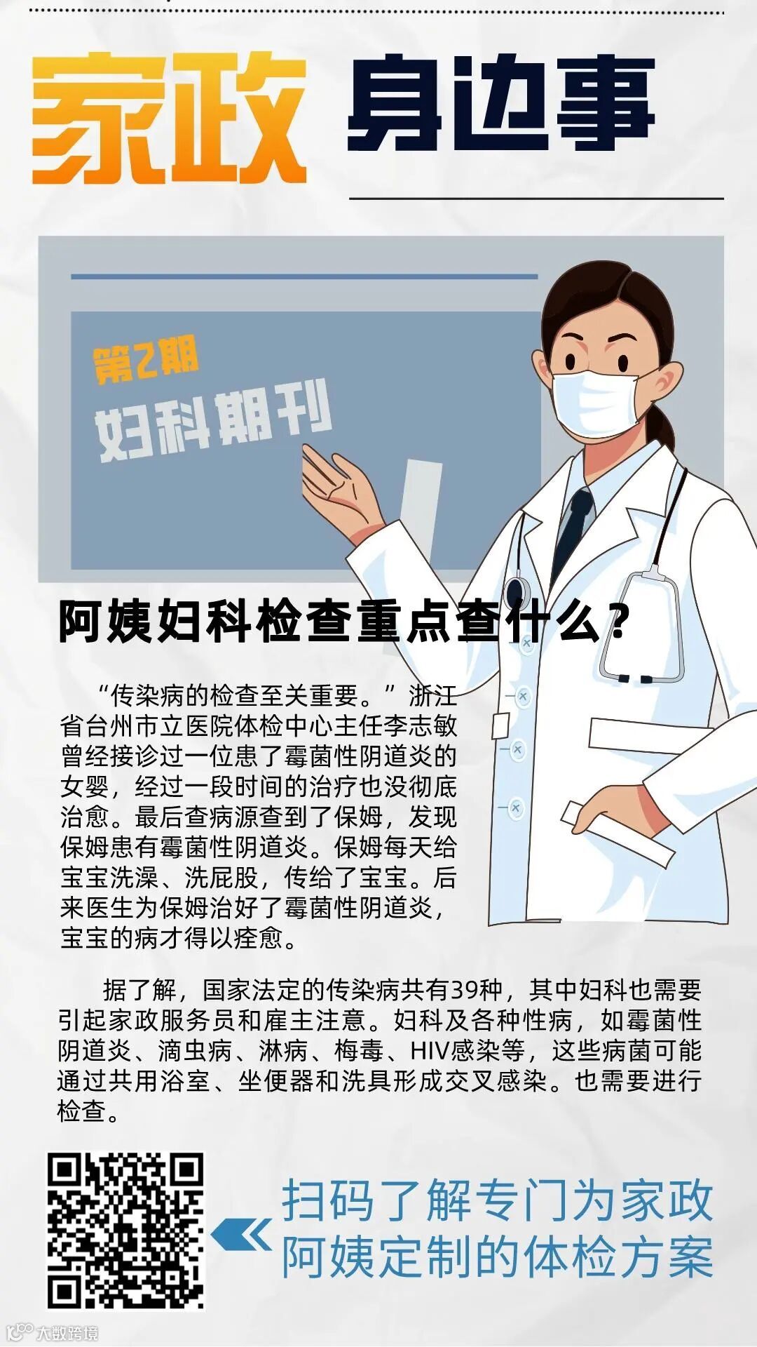 为了让大家更了解家政行业的体检健康小知识,熊猫系统特推出家政身边事——体检知识期刊系列。