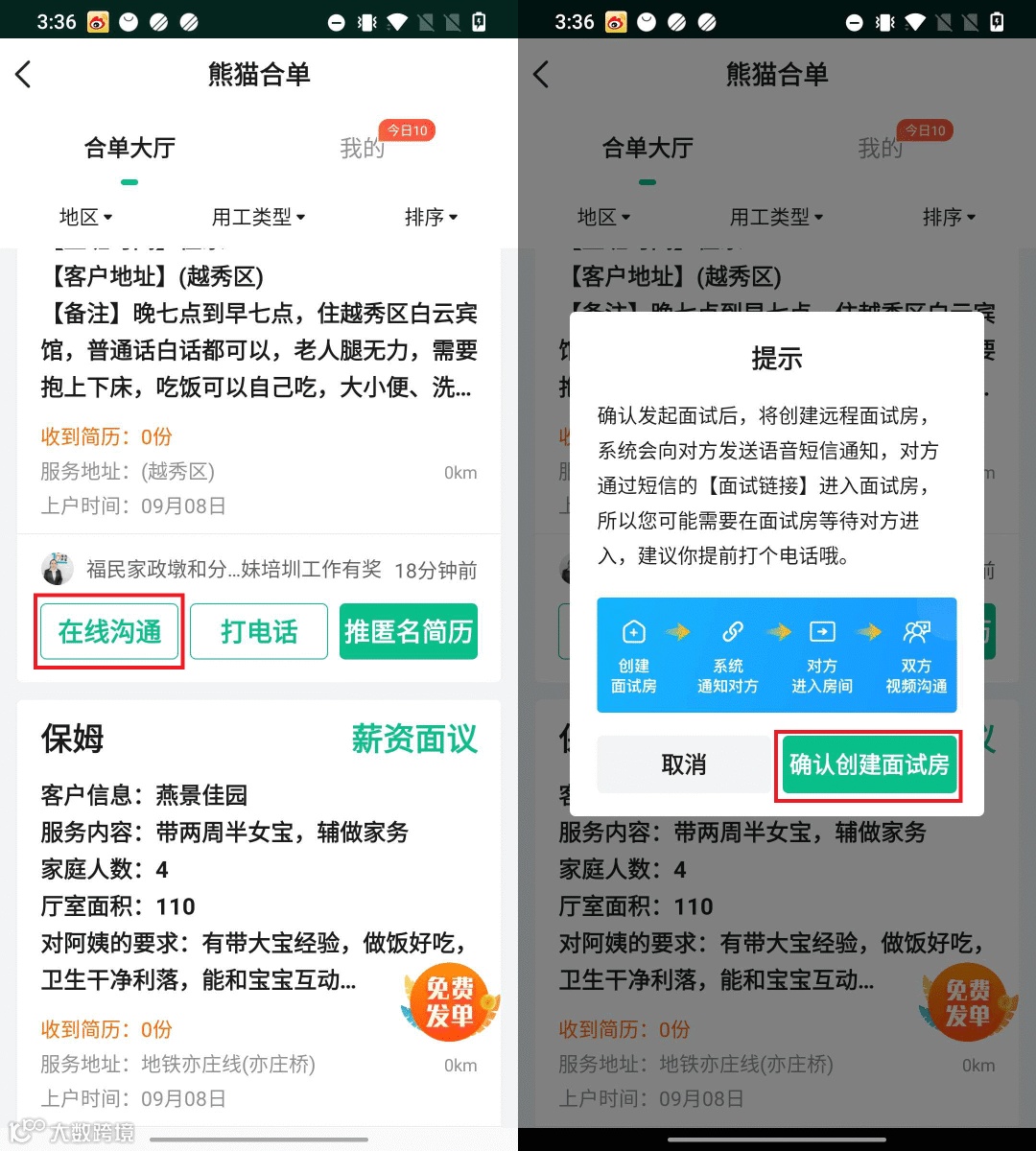 1、合单大厅发起远程面试,提升效率