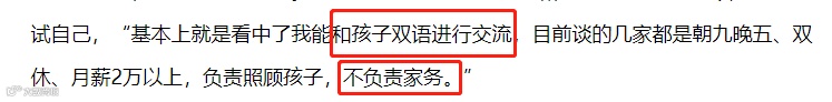 (刘双采访截图,所做职业做的更像是打着保姆擦边球的“语言家教”。)