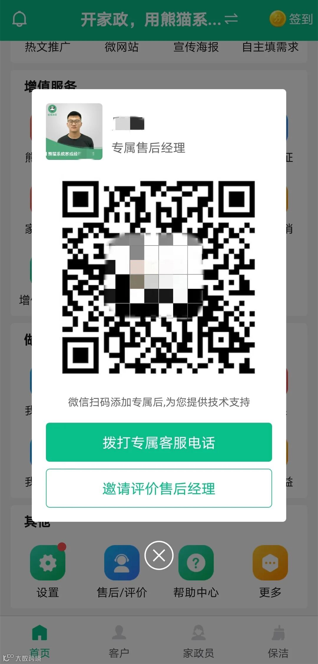 大家可以在熊猫系统首页—售后/评价中查询、验证专属售后经理电话、姓名信息。