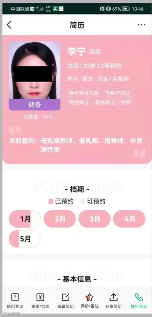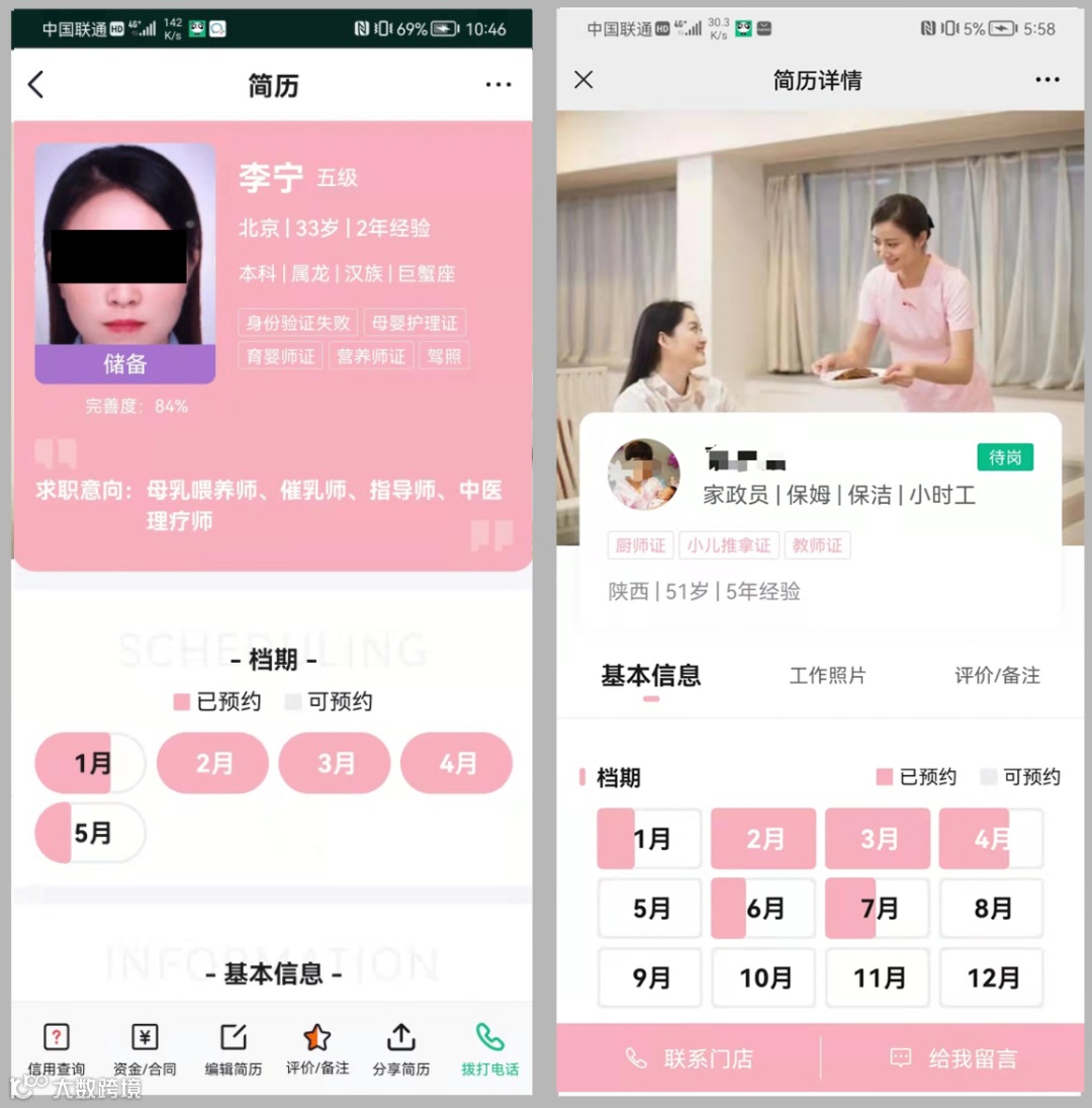 右1:家政C通过熊猫系统发的新版简历