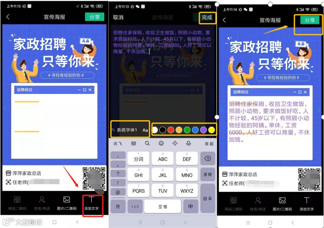 3、保存海报到本地,可以打印放置门店内,有阿姨来访可以直接留简历,也可以在活动上分发宣传单页。