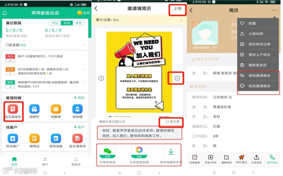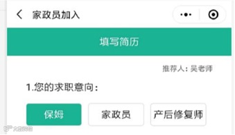 优点:给家政公司多收集阿姨简历、让阿姨自己录简历减轻负担,让阿姨更好的分享出去,以阿姨带阿姨 。