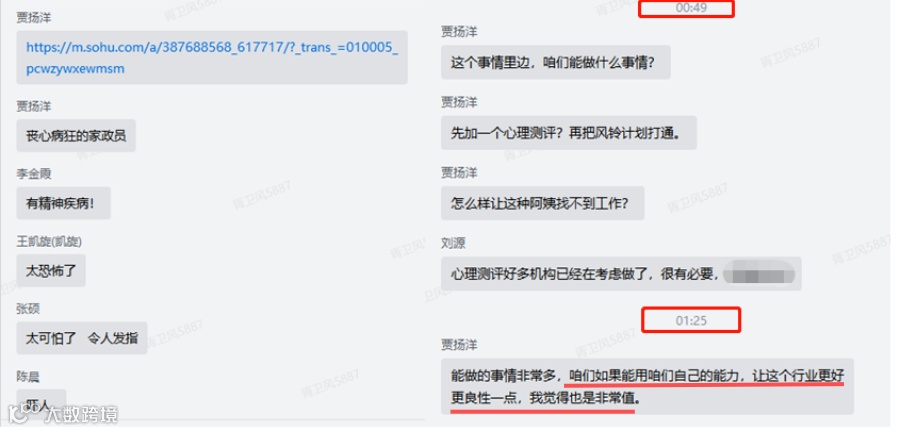 出现恶性保姆事件,第一时间在企信群里探讨解决方案
