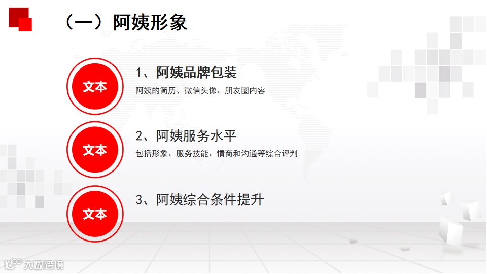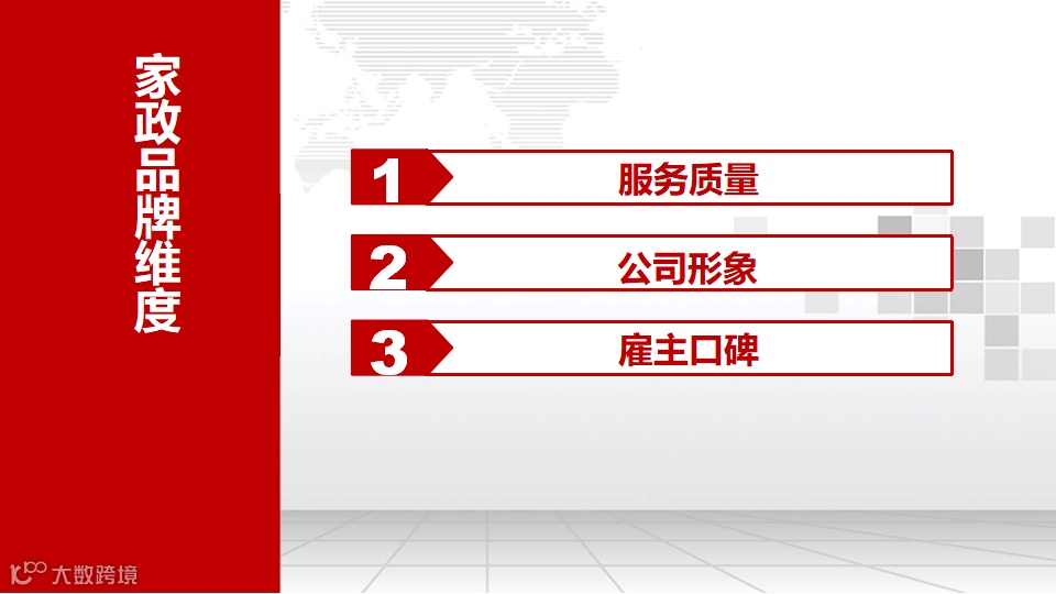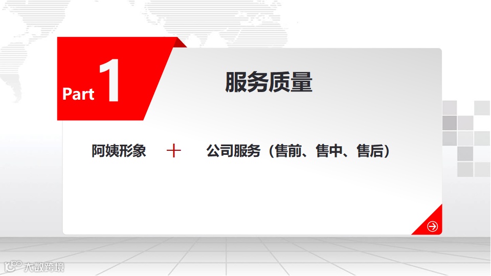 服务质量包含的要素较多,可分为2大块,阿姨形象+公司服务