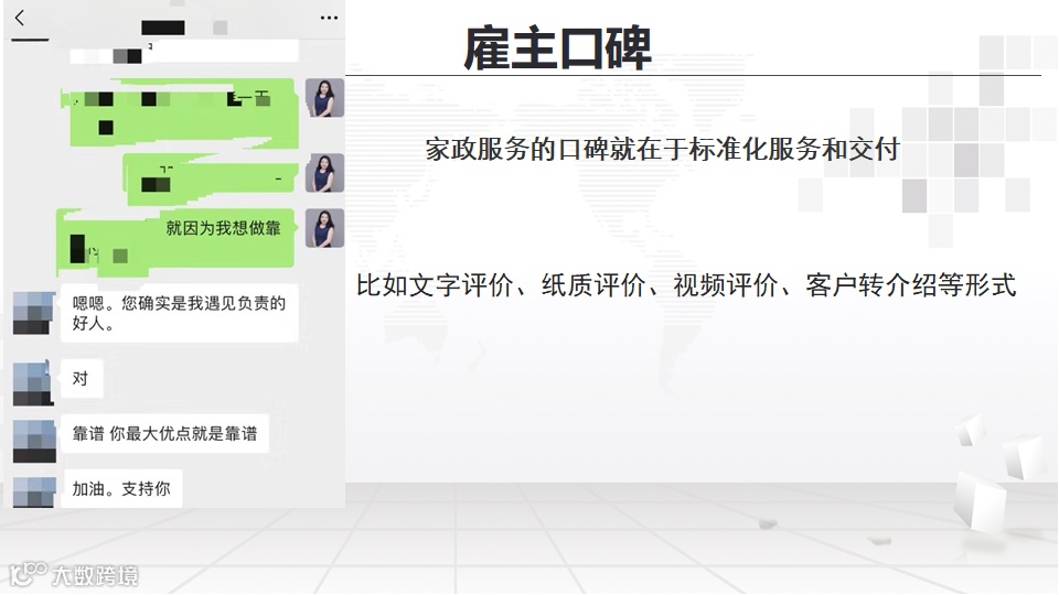 2、阿姨服务水平情商和年纪是客户很看重的点。