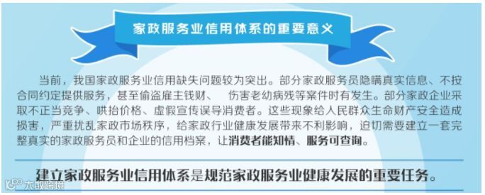 令人欣慰的是近期商务部发展改革委联合发布了《关于建立家政服务业信用体系的指导意见》