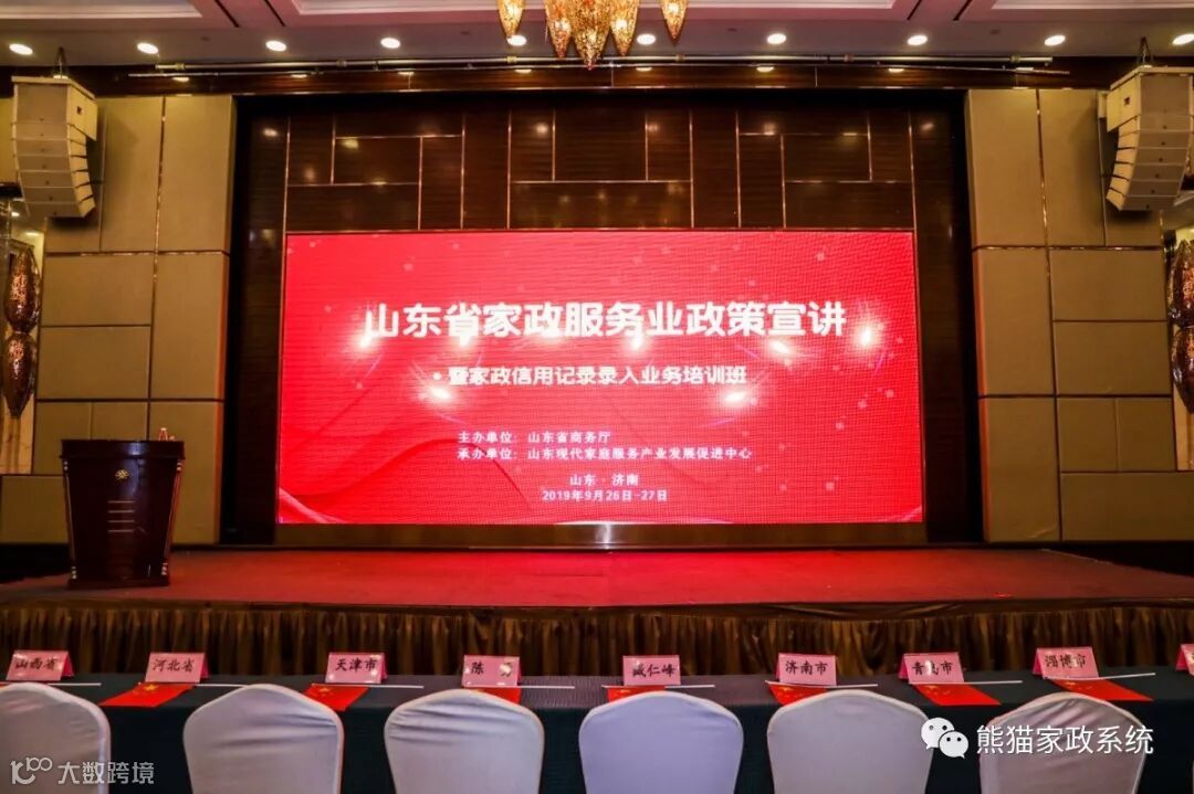 此次会议在山东省济南市黄台大酒店举行,山东省民政厅福利处处长、北京社会管理学院客座教育王建斌,济南市国税局副处长吴含玉,山东省公共就业和人才服务中心副处长于淑丽等十几位各市商务局领导,上百位家政公司负责人参与培训班。其中,商务厅商贸发展处处长,臧处长也提到“熊猫系统”等互联网企业对家政行业互联网+服务的推动作用。