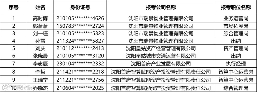 根据沈阳诚信发展集团有限公司所属企业公开招聘公告,经过报名、资格审查、笔试、面试、背景调查和体检等程序,对沈阳诚信发展集团有限公司所属企业公开招聘拟录用人员进行公示。