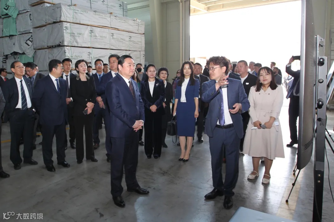 4月25日,辽宁省韩国海外公共服务仓启动仪式在韩国仁川举行。代表团一行听取情况介绍。