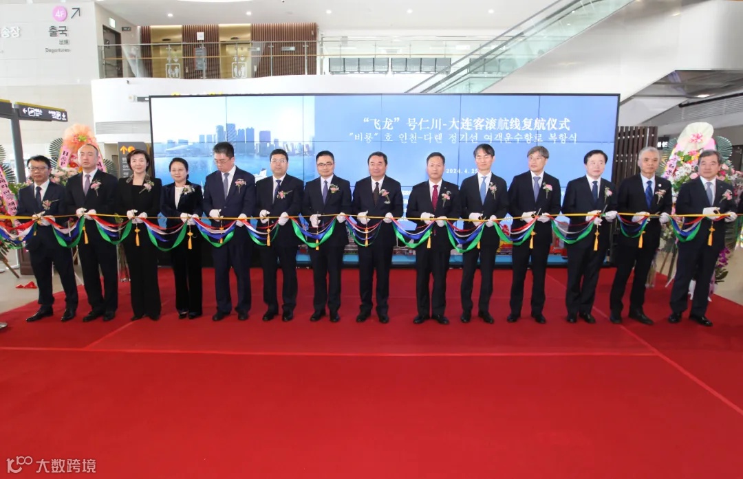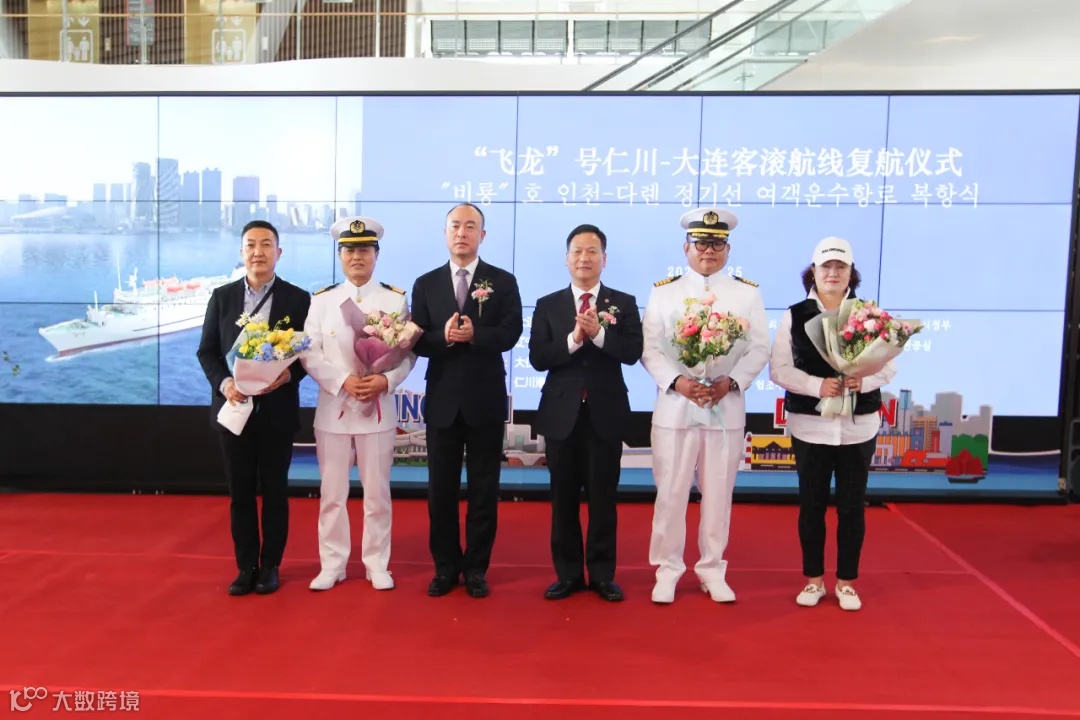 “飞龙”号轮船由韩国大仁轮渡有限公司运营,该公司由中远海运大连投资有限公司等中国企业与多家韩国企业合资组建。“飞龙”号轮船1995年开通运营,执行大连—仁川客货滚装航班,累计为中韩两地运送旅客175万余人次,集装箱43万余标箱。受疫情影响,该航班于2020年暂停客运业务。随着两地人员往来越来越密切,对客运航线的需求不断增大,经过两地相关部门积极协调配合,相继完成了项目审批、泊位改造等系列工作,客运业务实现复航。当日的活动现场气氛欢快热烈。仁川市、大连市相关负责人先后致辞,仁川市、韩国大仁轮渡相关负责人为乘客代表、“飞龙”号船长和乘务长献花。伴随着悠扬的音乐,首批乘客陆续登上轮船,当地时间15:30,轮船向着大连方向启航。