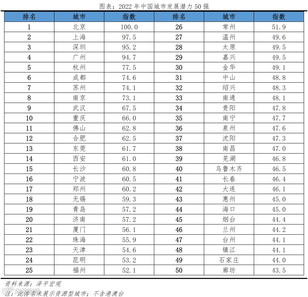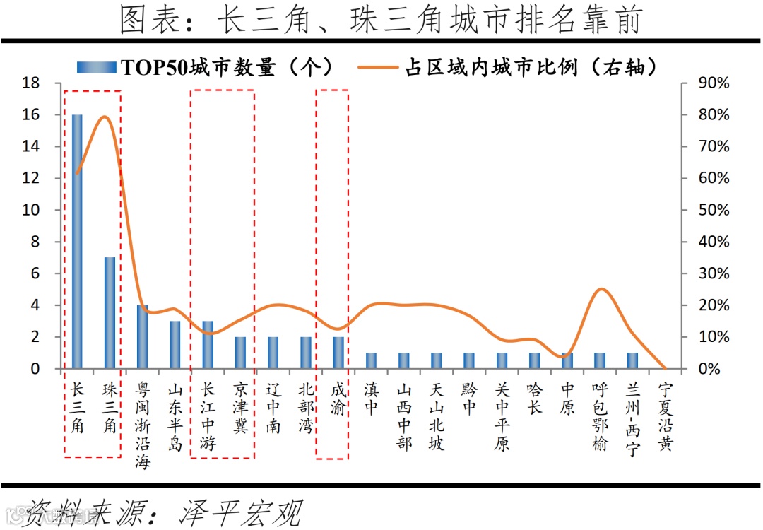 北上深广居榜首,区域中心城市及长三角珠三角城市表现突出