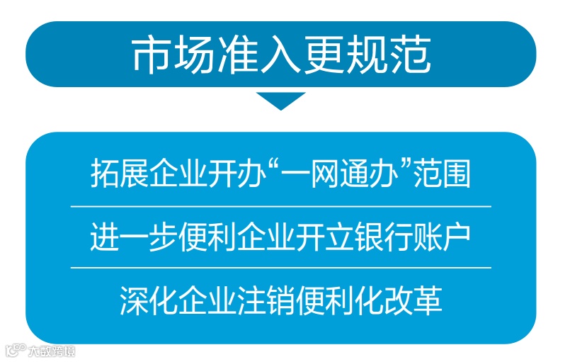 在建立更加规范的市场准入制度方面,《方案》提出,将企业登记信息变更纳入企业开办“一网通办”范围。推行住所(经营场所)登记申报承诺制,建立健全住所负面清单管理制度。探索建设标准化住所数据库,防范虚假住所等风险。进一步便利企业开立银行账户。探索建立自动制售设备等自动化、无人化新业态和新模式准入准营标准。完善市场主体退出机制。深化企业注销便利化改革,支持符合条件的各类市场主体通过简易程序退出市场。试行企业登记信息变更网上办理。推行企业年报“多报合一”。