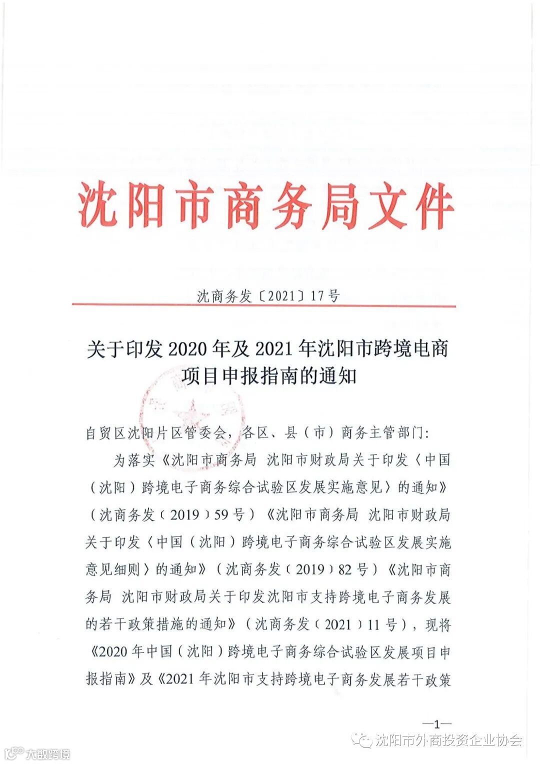 导读:关于印发2020年及2021年沈阳市跨境电商项目申报指南的通知