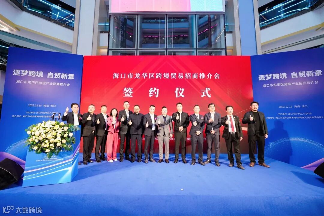 开业仪式结束,参会来宾一同进入商场L层中庭,见证“逐梦跨境 自贸新章——海口市龙华区跨境产业招商推介会”的隆重召开。项目推介环节之后,由海口市龙华区商务局局长王利宁见证了六项签约项目的达成,见证了盛世云集团、国融奥特莱斯股份有限公司、海创通(出口)跨境电商产业基地 、江西省海际购进出口有限公司等跨境贸易优秀企业与森大集团,及森大万国购的商户代表达成战略合作,意向采购需求总额超过1亿人民币。