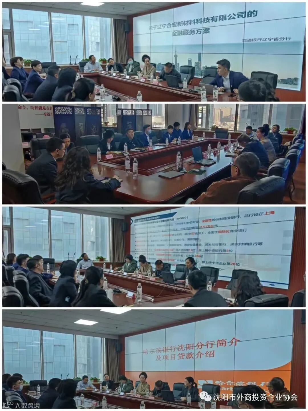 辽宁合宏新材料科技有限公司代表介绍了企业基本情况,包括目前施工进展、主营聚焦高分子复合新科技的研发、生产和销售、涉及应用领域以及资金需求情况。4家金融机构分别就本行的基本情况、政策支持、优势以及为企业