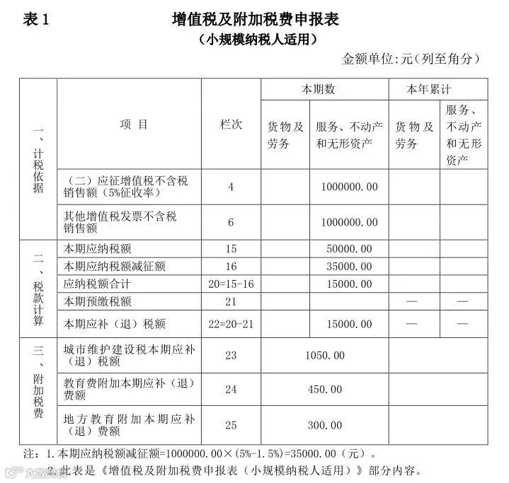 2. 城市维护建设税、教育费附加和地方教育附加。《财政部 税务总局关于实施小微企业普惠性税收减免政策的通知》(财税〔2019〕13号) 第三条规定 :“由省、自治区、直辖市人民政府根据本地区实际情况,以及宏观调控需要确定,对增值税小规模纳税人可以在50%的税额幅度内减征资源税、城市维护建设税、房产税、城镇土地使用税、印花税(不含证券交易印花税)、耕地占用税和教育费附加、地方教育附加。”甲公司所在省规定,上述“六税两费”在2019年1月1日至2021年12月31日期间均按50%减征。那么,甲公司应缴纳城市维护建设税47619.05×7%×50%=1666.67(元);教育费附加47619.05×3%×50%=714.29(元);地方教育附加47619.05×2%×50%=476.19(元)。