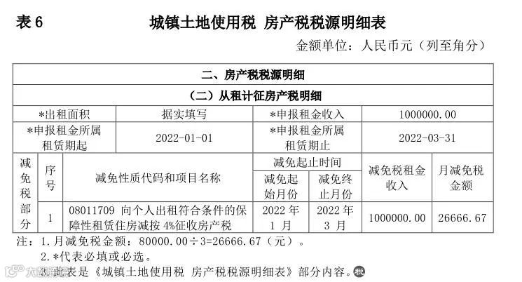 3. 房产税。由于第24号公告规定的房产税优惠对象仅限于出租给个人和专业化规模化住房租赁企业,所以,甲公司不符合优惠条件。但根据财税〔2019〕13号文件和当地实际情况,其可以享受小规模纳税人房产税减半优惠,即应缴纳房产税=1000000÷(1+5%)×12%×50%=57142.86(元)。