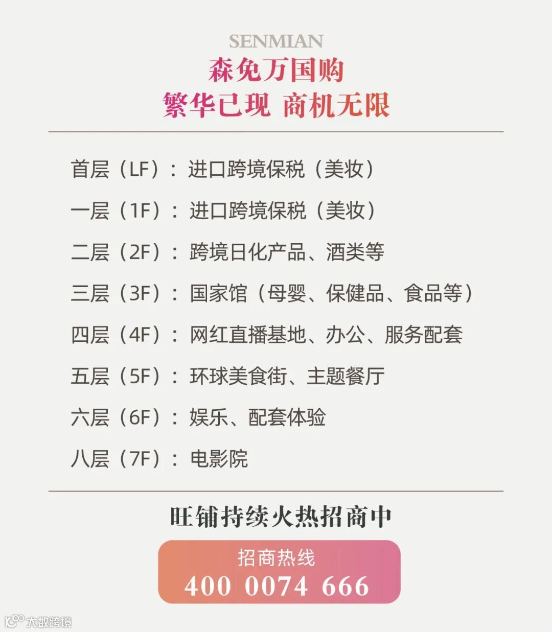 PS:森免万国购各业态旺铺仍在招租中,欲来从速!