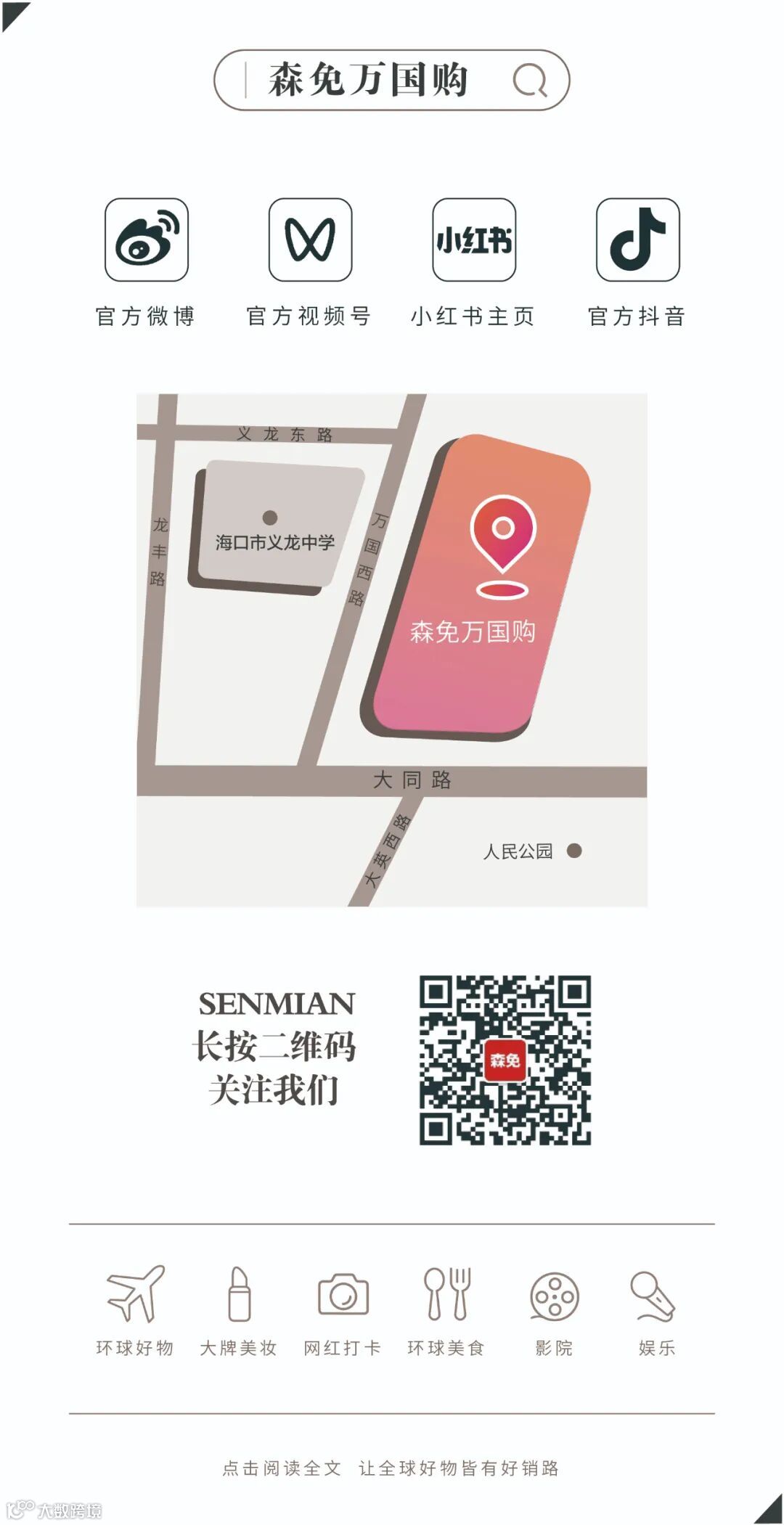 据悉,以“海南潮·家国情——共享自贸港新机遇”为主题的第21届国际潮团联谊年会定于2022年底于海南省海口市举办。而森免万国购将深度参与年会,借助这一盛事,推介项目优势并共同探讨海南跨境贸易的产业模式,加速推动海南经贸联通内外发展。
